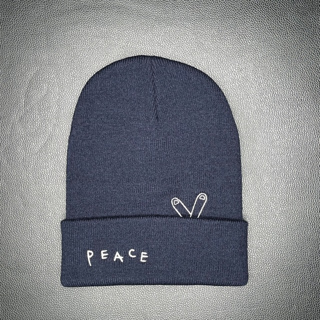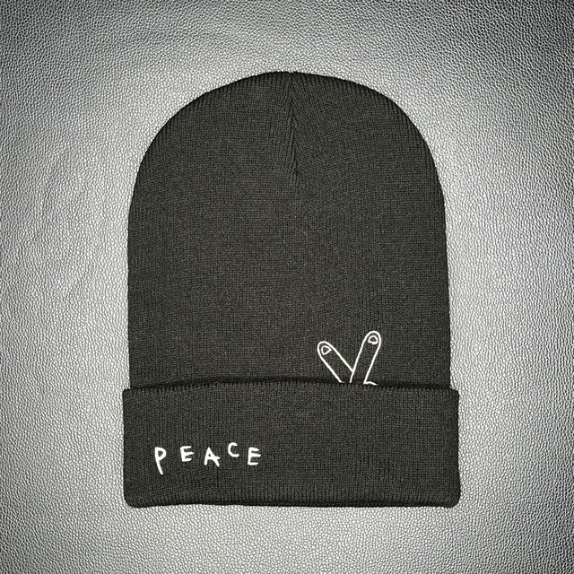 Original "rakugaki peace(fuck)" Beanie gin tattooがメインでやっている落書きデザイン。 今回のオリジナルビーニーは、一見PEACEサインをしているかと思いきや、折り返し部分を開くとFUCKサインになった、ブラックユーモラスなアイテムです。 落書きデザインと良い塩梅で、可愛く仕上がっております。 ※デザイン部分は刺繍です。 アクリル100%なので季節問わずお使い頂けます。