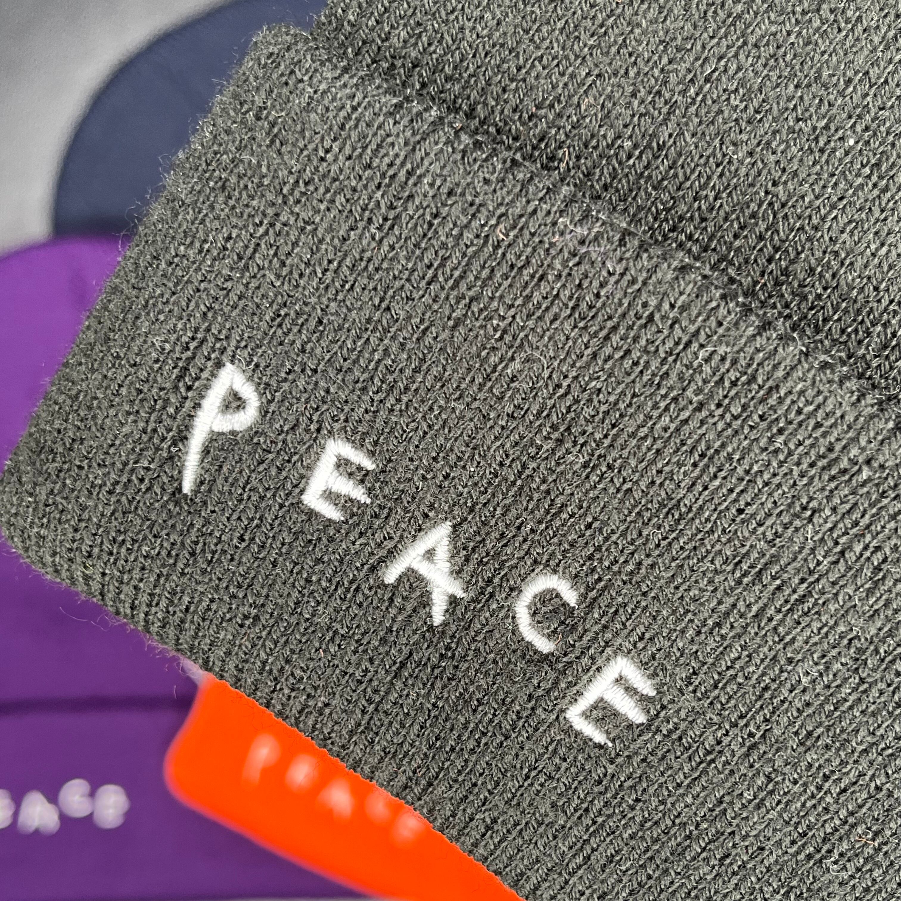 今回のオリジナルビーニーは、一見PEACEサインをしているかと思いきや、折り返し部分を開くとFUCKサインになった、ブラックユーモラスなアイテムです。