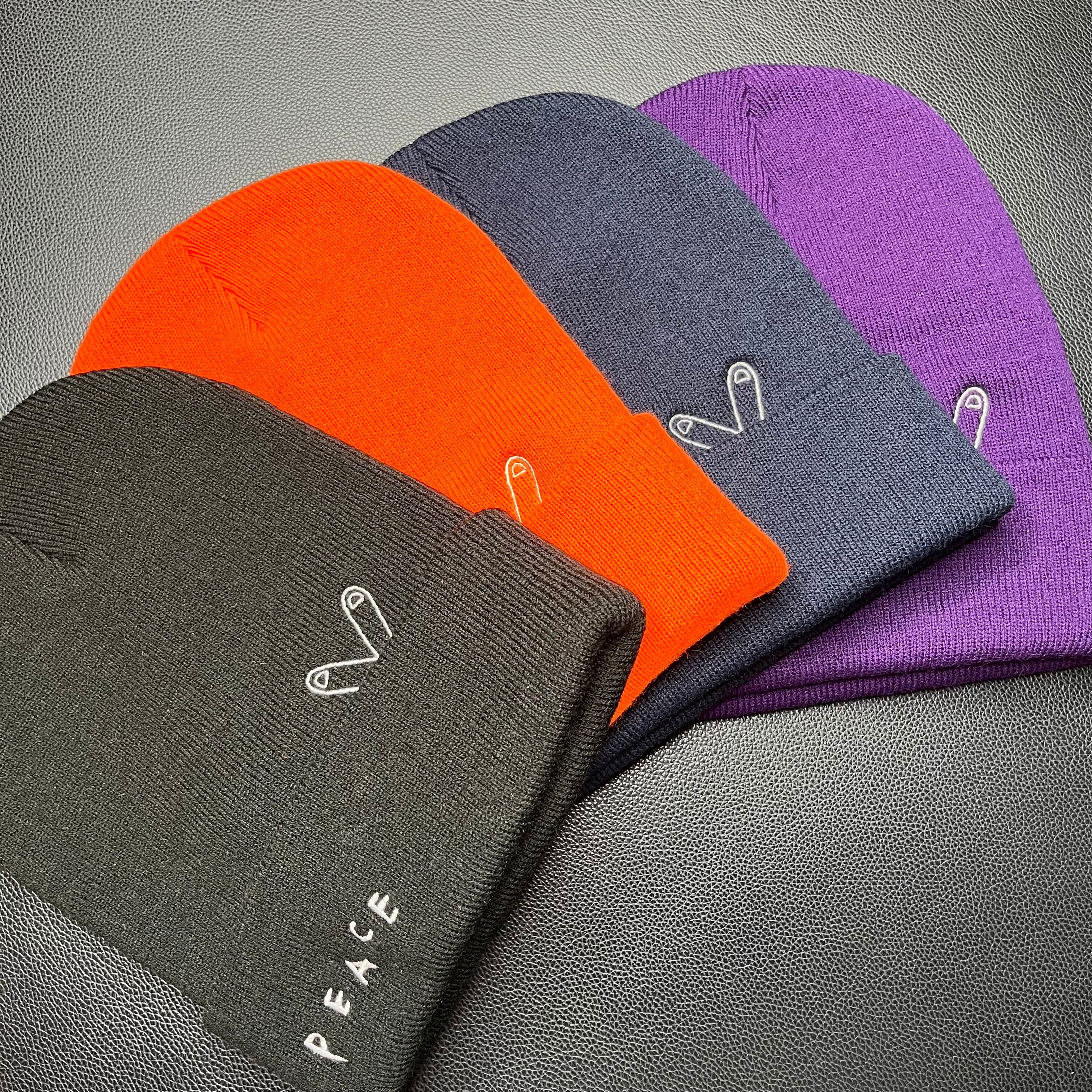 今回のオリジナルビーニーは、一見PEACEサインをしているかと思いきや、折り返し部分を開くとFUCKサインになった、ブラックユーモラスなアイテムです。